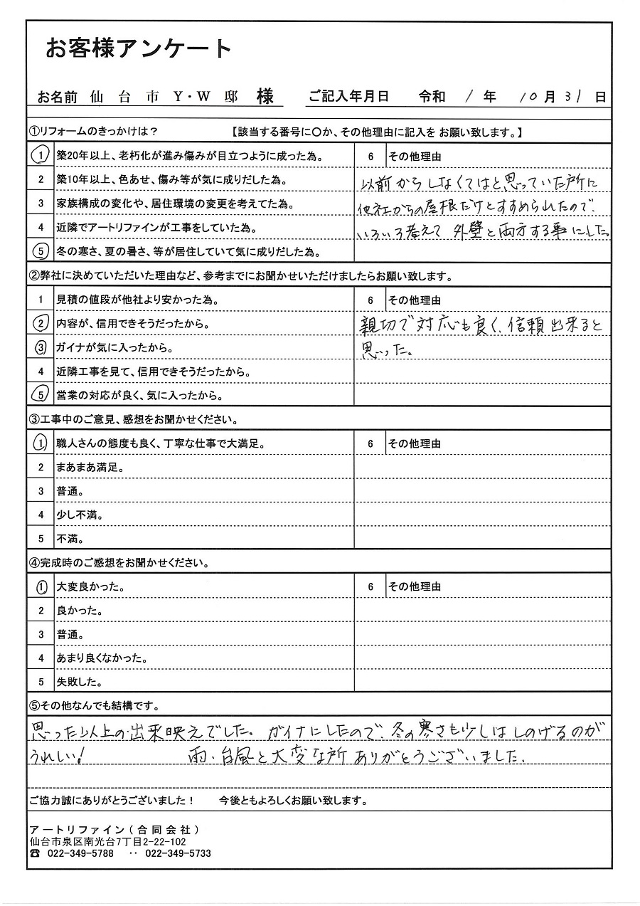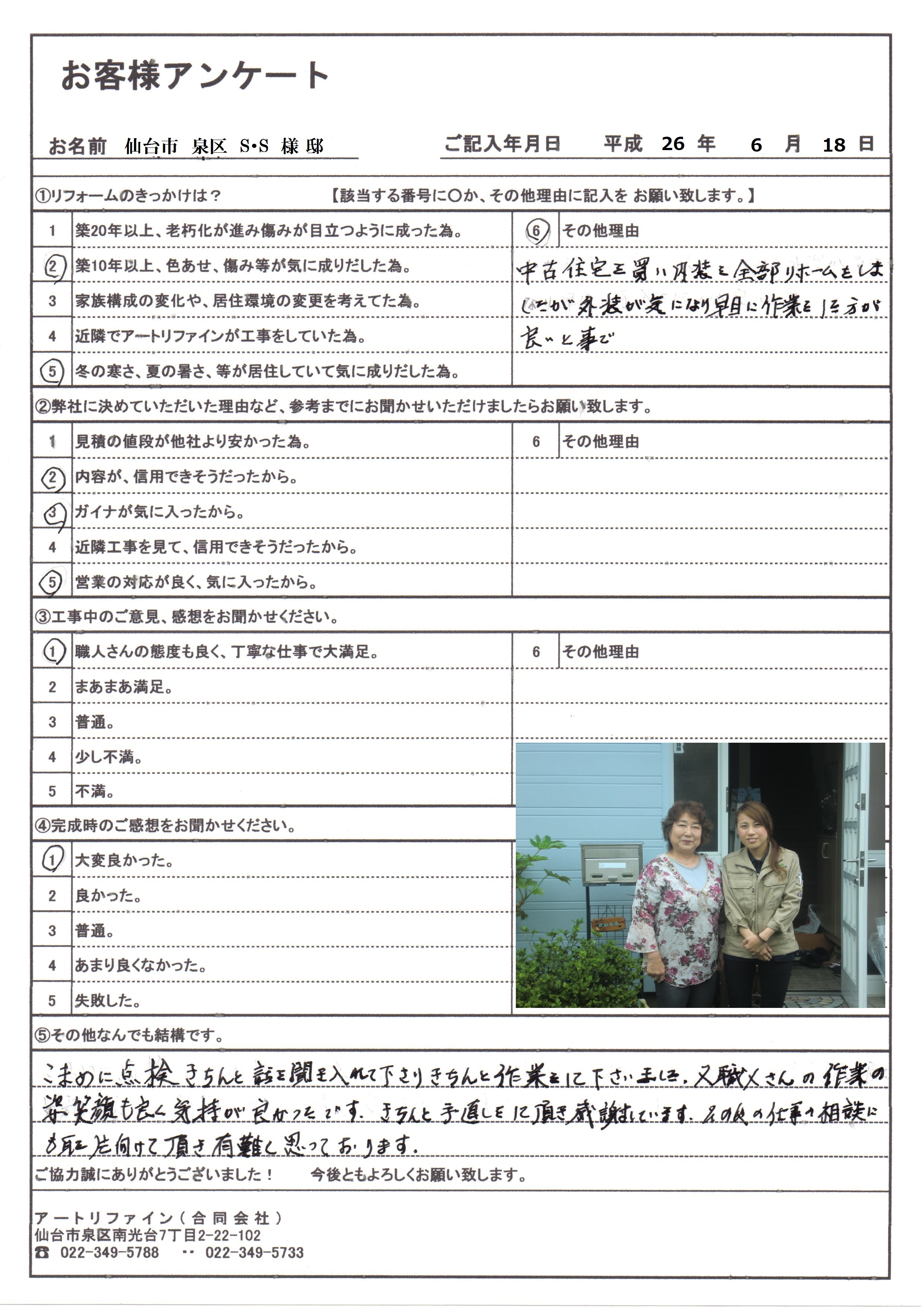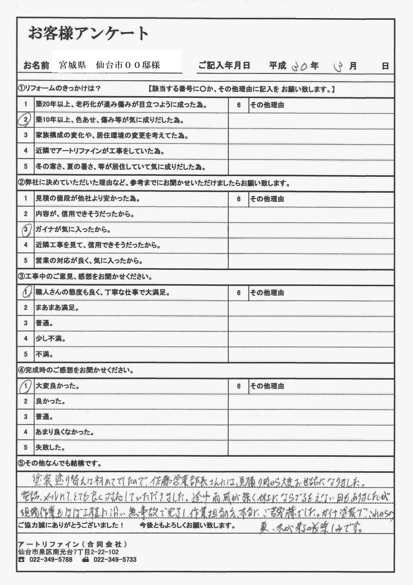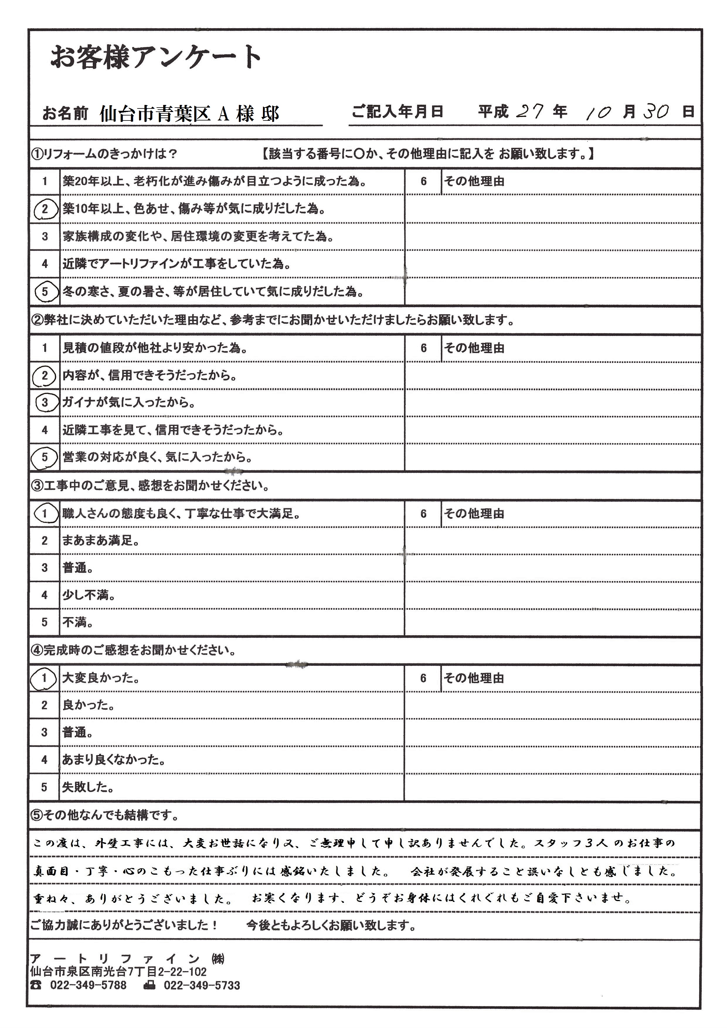 佐藤社長アークリフォームで施工させていただいたお客様の声を一部ご紹介いたします。