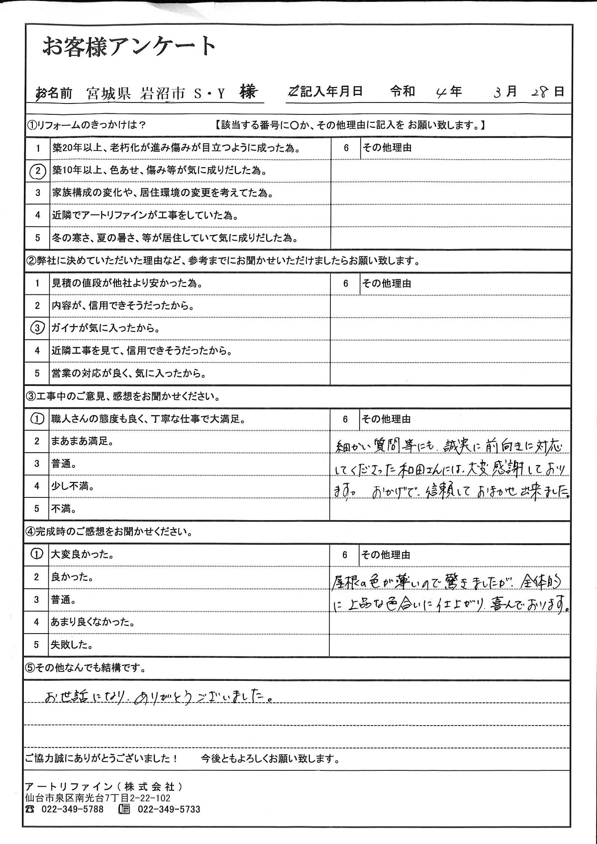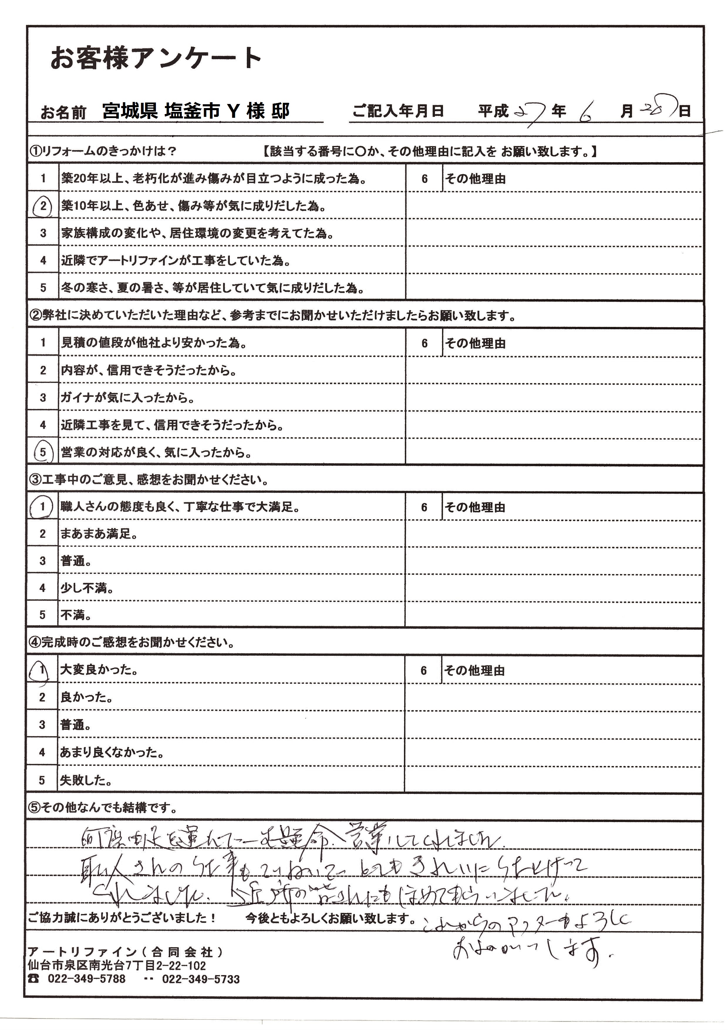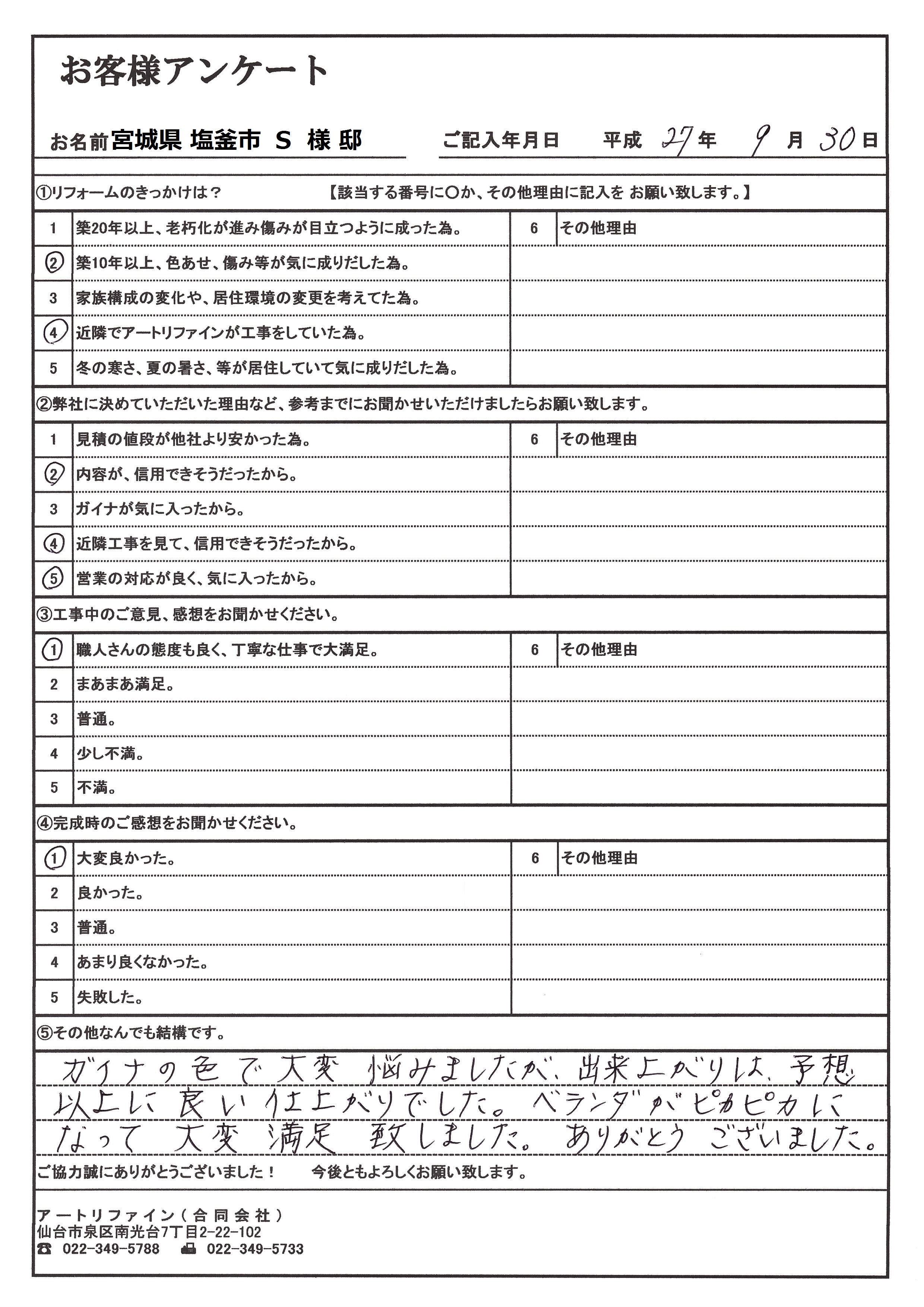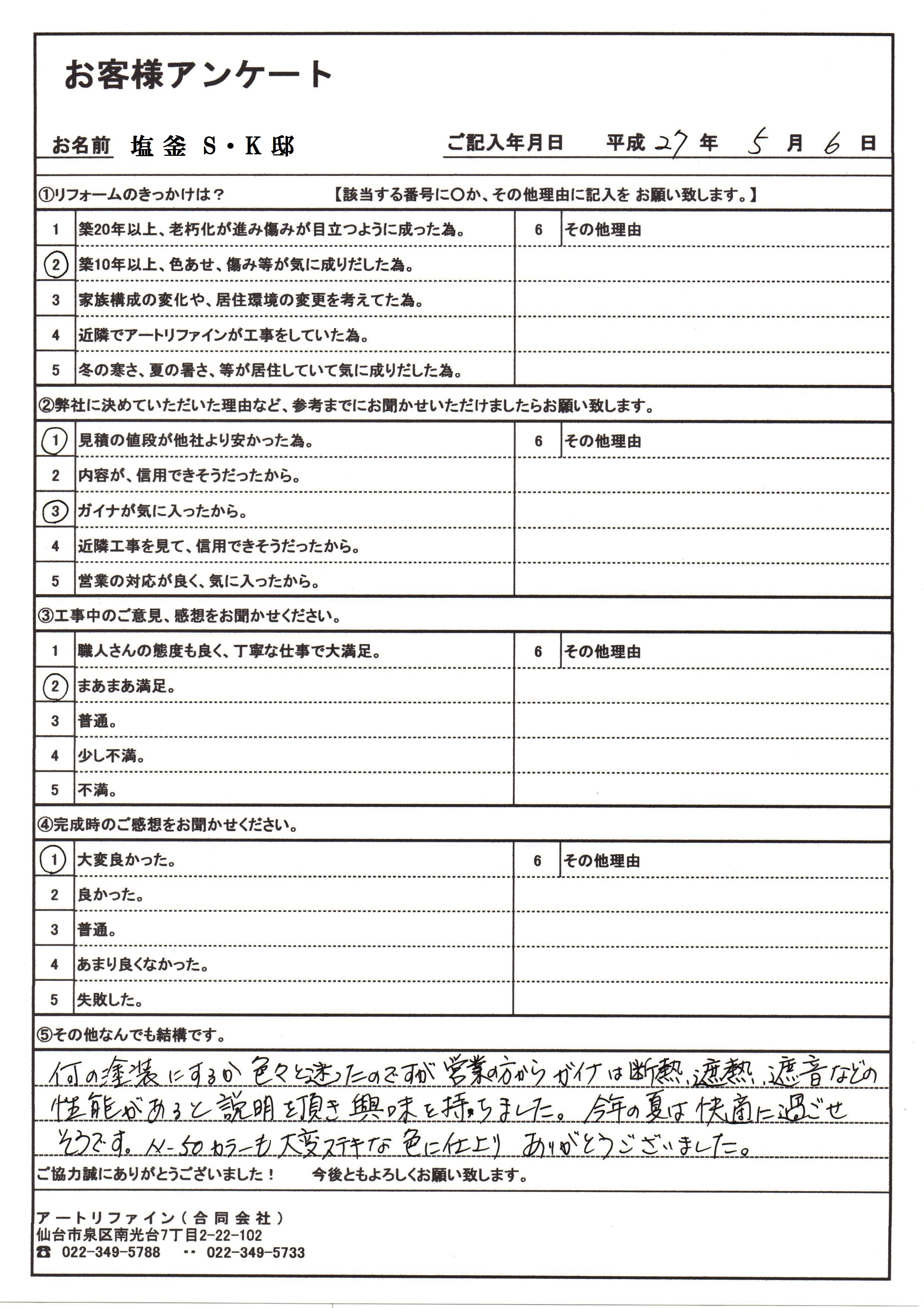 佐藤社長アークリフォームで施工させていただいたお客様の声を一部ご紹介いたします。